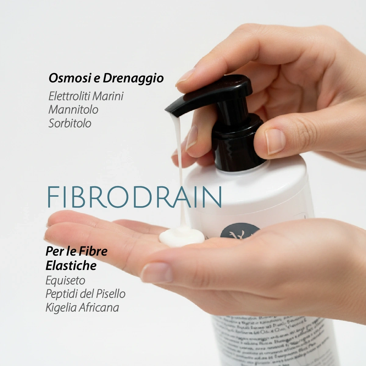 Descrizione dettagliata e “armonizzata” degli ingredienti di FIBRODRAIN; ogni componente è stato analizzato in relazione all'obiettivo del prodotto: il contrasto alla cellulite e il potenziamento della permeabilità cutanea.