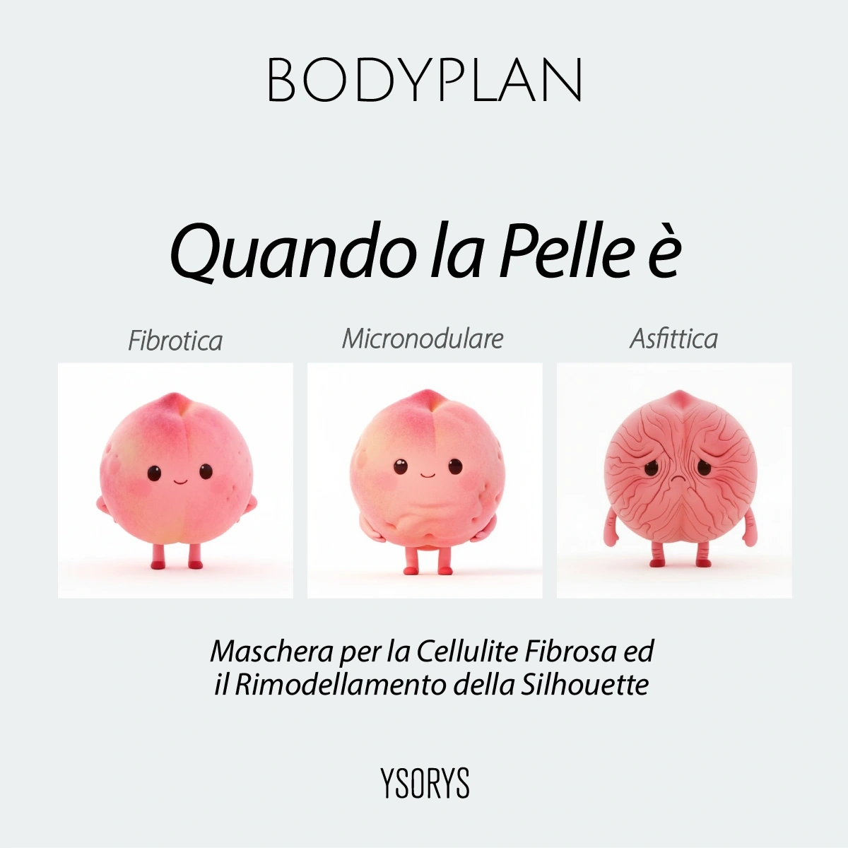 Maschera per il corpo in morbido Gel ; all’interno del trattamento BODY PLAN è il prodotto con cui si sviluppa l’applicazione cosmetica pre-posa/occlusione. Dedicata ai protocolli Booster del trattamento ; specifica per gli inestetismi causati dalla Cellulite Fibrosa e dalle Fibro-Adiposità Localizzate.
