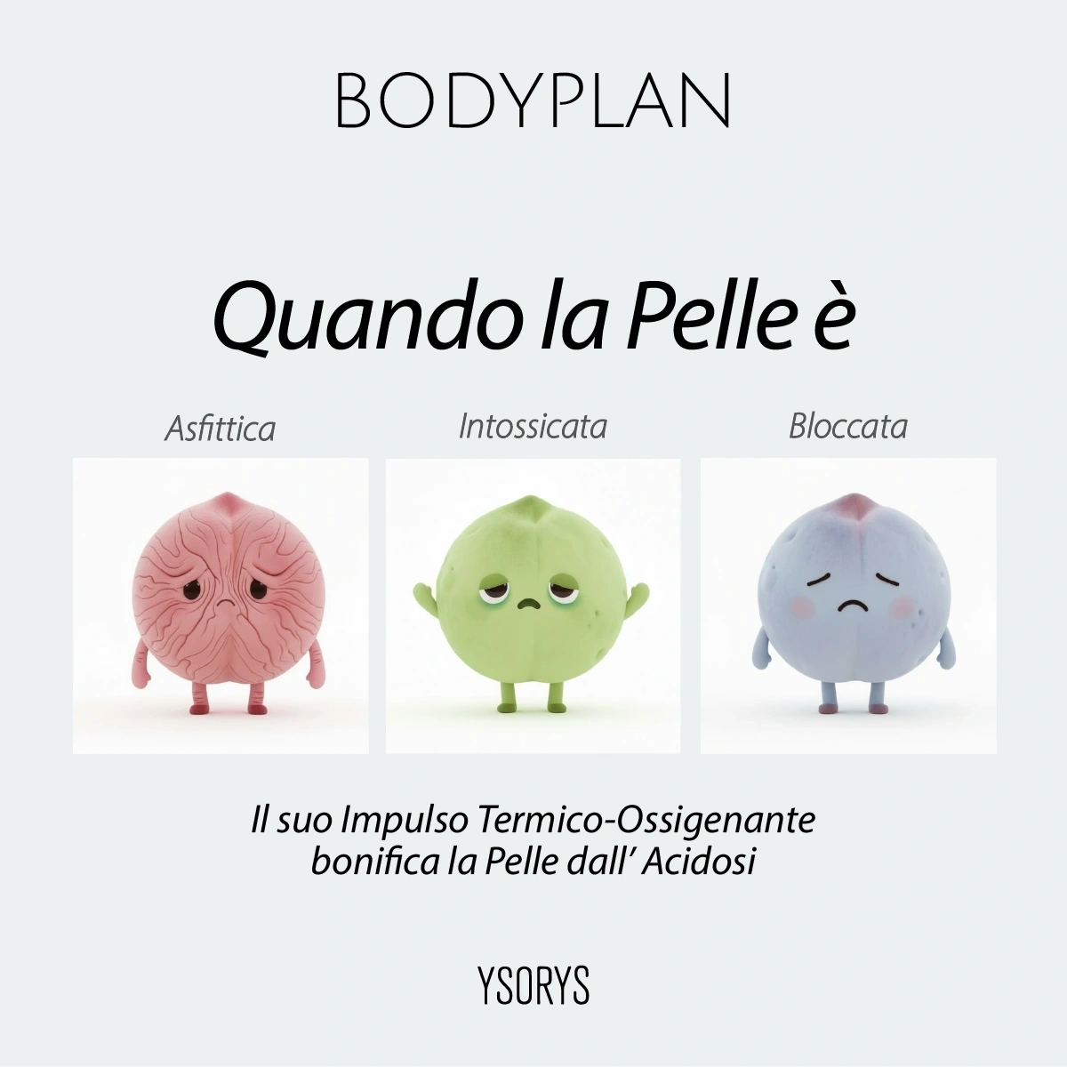 Dedicato alla prima fase di apertura della seduta di tutti i protocolli corpo Body Plan. Svolge una funzione indirizzata al Riequilibrio Alcalino del pH Epidermico, e dona contemporaneamente primo impulso ossigenante-termico di profondità. É un prodotto di “Sblocco” delle condizioni cutanee-profonde che inducono l’inestetismo.